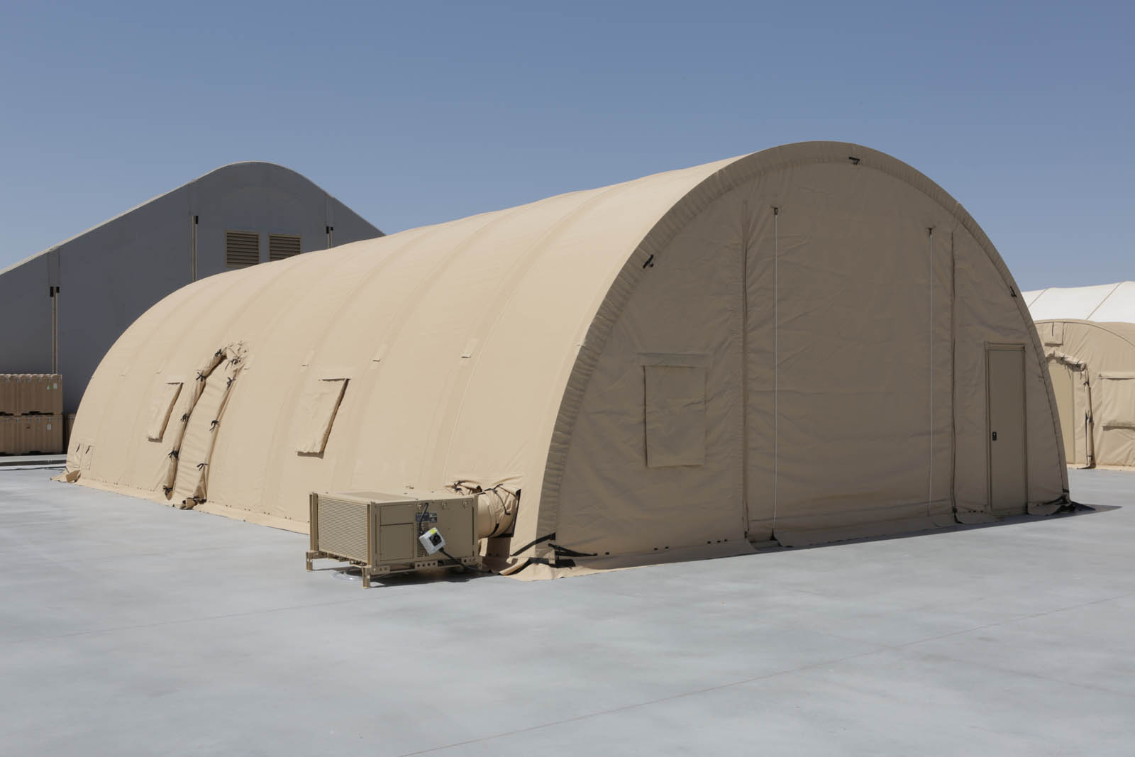 Military structures require a unique set of characteristics to make them safe, useful and cost-effective. Each of the 365 structures for this project is designed to be easily and quickly erected, disassembled, relocated and adapted to serve the needs of changing conditions and locations during ongoing military missions. The Medium Weight Shelter Systems are also designed for the maximization of usable space within the shelter, and for efficient and timely transportation.